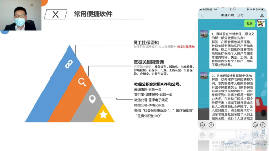 第一期直播課程由公司人力資源部開發(fā)并主播,主題為《中建八一五險(xiǎn)二金政策解讀》。直播設(shè)有政策宣貫、交流互動(dòng)等環(huán)節(jié),內(nèi)容通俗易懂,學(xué)員積極參與。通過前期策劃與宣傳,直播間觀看人數(shù)2153人,累計(jì)點(diǎn)擊量5436人次。同時(shí)直播間設(shè)置的課程回放功能也可滿足未能參與觀看直播的員工隨時(shí)觀看。