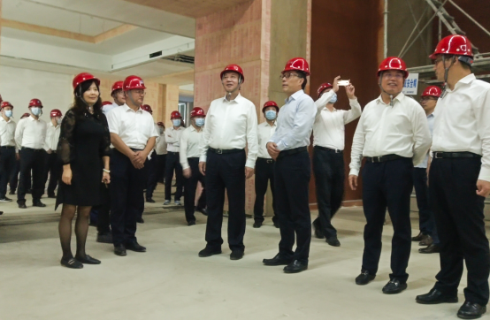 在尼山賓舍施工現場,吳國平向校榮春一行講述該項目的設計理念及重大意義,希望八局能再接再厲,確保工程盡早交付使用;在尼山會堂現場,吳國平對八局項目高標準、高質量、高速度建設成果表示充分肯定,對兩項目團隊展現的高效建造實力、“魯班精神”表示高度認可。