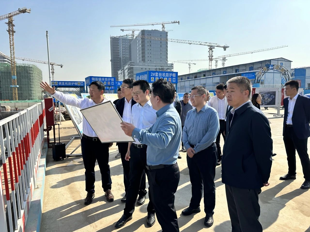 10月10日,濟南高新區黨工委副書記、管委會常務副主任任廣鋒調研中建八一清河電科產業園(一期)項目,濟南高新區黨工委委員、管委會副主任李濤,濟南綜保區黨工委委員、管委會副主任張軍,中建八局一公司項目經理廖順波及各參建單位代表陪同。