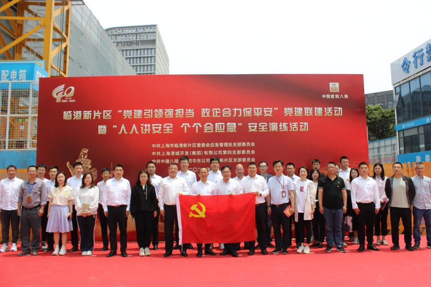 為強(qiáng)化黨建引領(lǐng),提高安全生產(chǎn)意識(shí),5月26日,上海臨港新片區(qū)在港城廣場四期項(xiàng)目舉行“黨建引領(lǐng)強(qiáng)擔(dān)當(dāng) 政企合力保平安”黨建聯(lián)建共建暨“人人講安全 個(gè)個(gè)會(huì)應(yīng)急”安全演練活動(dòng)。