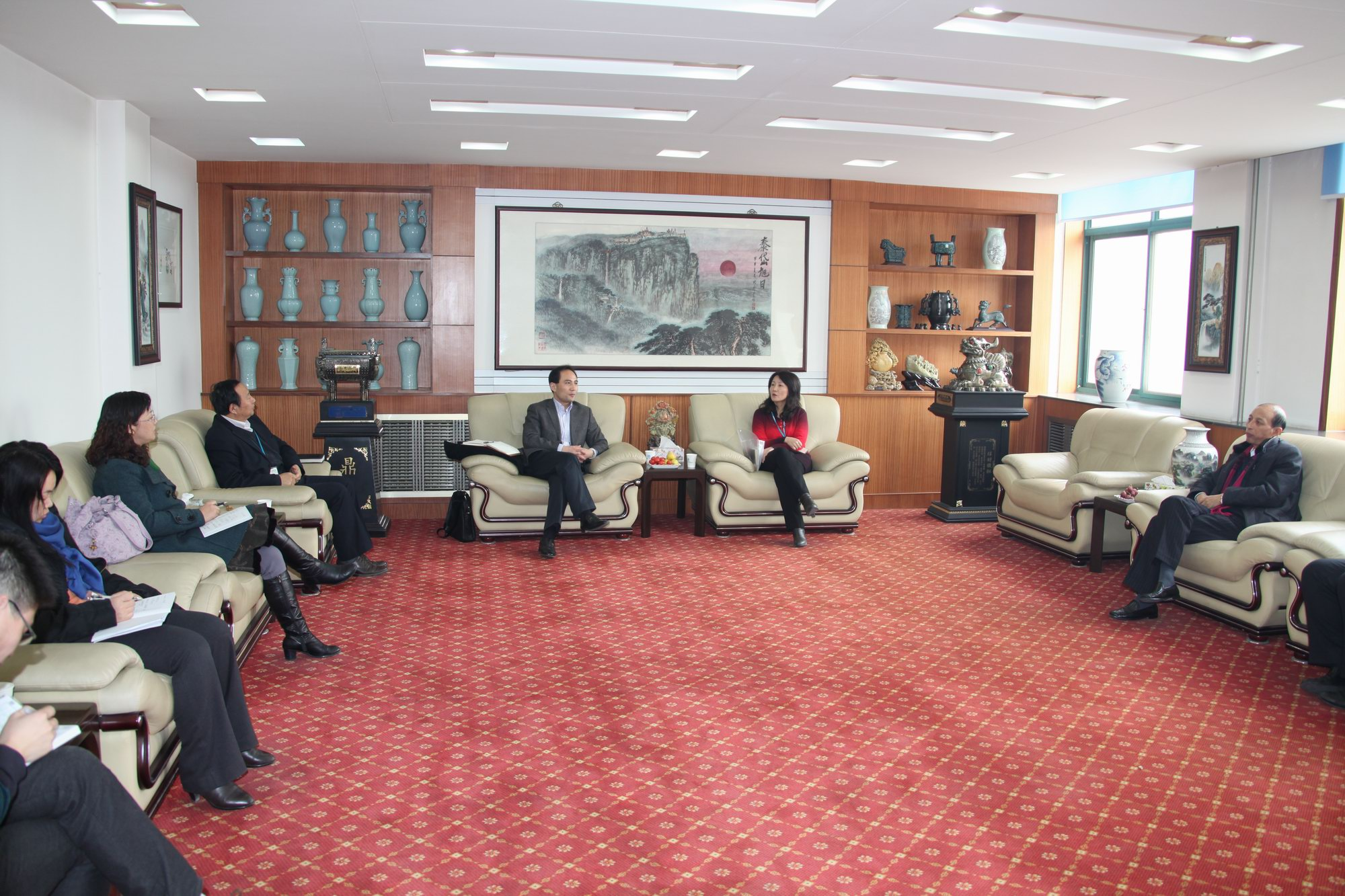 接下來的交流活動中,各位領導及各相關部門就施工、技術、人力資源、安全、財務、審計、黨群等各項工作進行了深入的探討和交流,并利用下午的時間,參觀了公司濟南奧體金融中心項目,詳細了解了項目工期管理、安全標準化、質量標準化、企業文化等各項工作的開展情況。