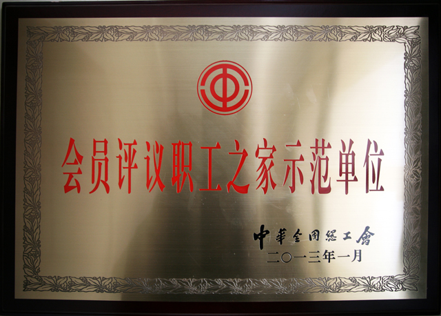 近日,公司工會榮獲全國“會員評議職工之家示范單位”榮譽稱號。