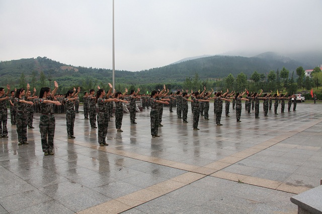 在李董事長的指示下,伴隨著雄壯的《中國人民解放軍進行曲》,新員工們身著迷彩,邁著整齊有力的步伐走過主席臺,進行了列隊式、分列式等表演。“令行禁止,使命必達”,伴隨著嘹亮的口號,二連的男員工們表演了虎虎生威的軍體拳。巾幗不讓須眉,在交通指示動作的表演中,女員工們的颯爽英姿也給人留下了深刻的印象。新員工們整齊劃一的動作、飽滿向上的狀態贏得了陣陣掌聲,充分展現了八局新兵的鐵軍精神和氣概。最后,隨著全體新員工手語操表演――《感恩的心》的結束,整個軍訓匯報表演畫上了圓滿的句號。