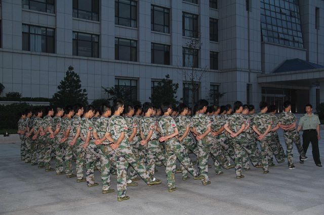 下午六點,當集合哨聲想起,新員工們迅速集合,320名身穿軍裝的新員工,成為了濟南國防教育基地一道亮麗的風景線,吸引了不少人的眼球。