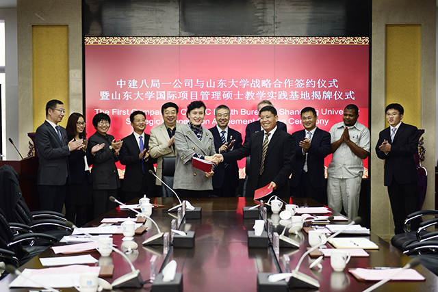 為緊密配合國家“一帶一路”戰略規劃,加快中國企業“走出去”的步伐,10月29日上午,公司與山東大學戰略合作簽約儀式暨山東大學國際項目管理碩士教學實踐基地揭牌儀式順利舉行。山東大學副校長陳子江,公司董事長、黨委書記李永明,山東大學客座教授、國際項目管理協會前任主席John Rodney Turner,山東大學管理學院書記吉小青,坦桑尼亞籍國際學生代表Yussuf Amour Ali,公司副總經理劉明,辦公室、人力資源部、工程管理部、黨委工作部、海外事業部等負責人出席了儀式。儀式由公司黨委副書記、工會主席王有標主持。