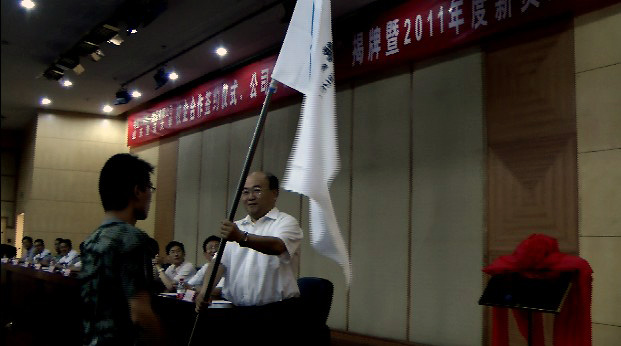 照片6:公司董事長徐愛杰為新員工授旗