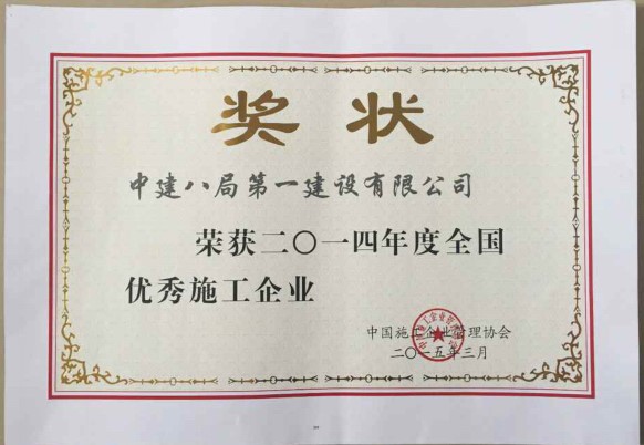 公司連續七年榮獲“全國優秀施工企業”榮譽稱號