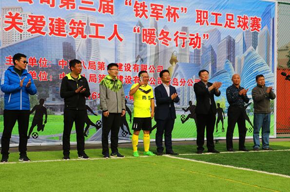 11月6日,歷時兩天半的公司第三屆“鐵軍杯”職工足球賽暨關愛建筑工人“暖冬行動”在青島足球公園圓滿落下帷幕。公司黨委副書記、工會主席王有標、工會工作部部長畢延寶、黨委工作部副部長、團委書記高繼貴、青島分公司黨委書記、經理董恩瑯、工會主席、總會計師汪國宇等領導出席閉幕式,并為獲獎代表隊、選手頒獎。