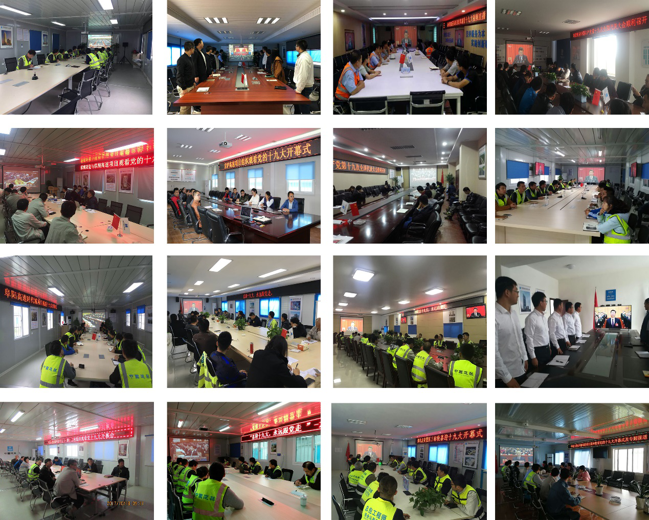 上午9點,在公司黨委書記、董事長董文祥的帶領下,公司總部機關近百名員工于公司會議室準時觀看十九大開幕會。與此同時,十四家二級單位和百余個工程總承包項目紛紛組織人員觀看。海外項目的成員即使身在國外,依舊心懷祖國,毛里求斯當地時間凌晨四點,伊甸園文化娛樂廣場項目的員工們就早早的端坐在會議室收看起了實況轉播;印尼一號雙塔、韓國濟州夢想大廈、韓國濟州Cypress高爾夫&度假村、印尼泗水Satoria Office Tower等項目的員工積極收看十九大并認真做記錄。