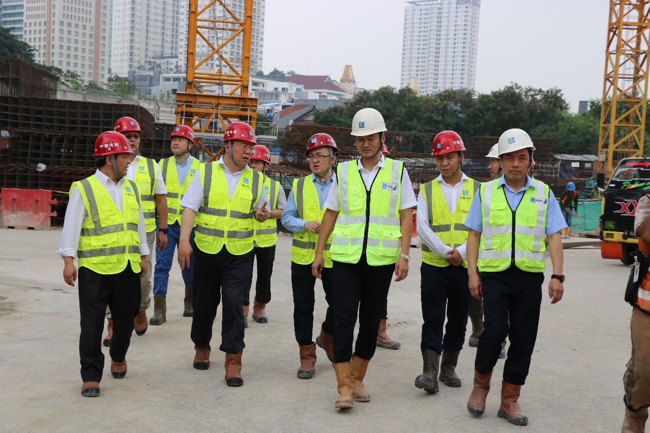 中國建筑集團有限公司黨組成員、副總經理,中建股份有限公司副總裁鄭學選一行蒞臨公司印尼一號雙塔項目進行調研