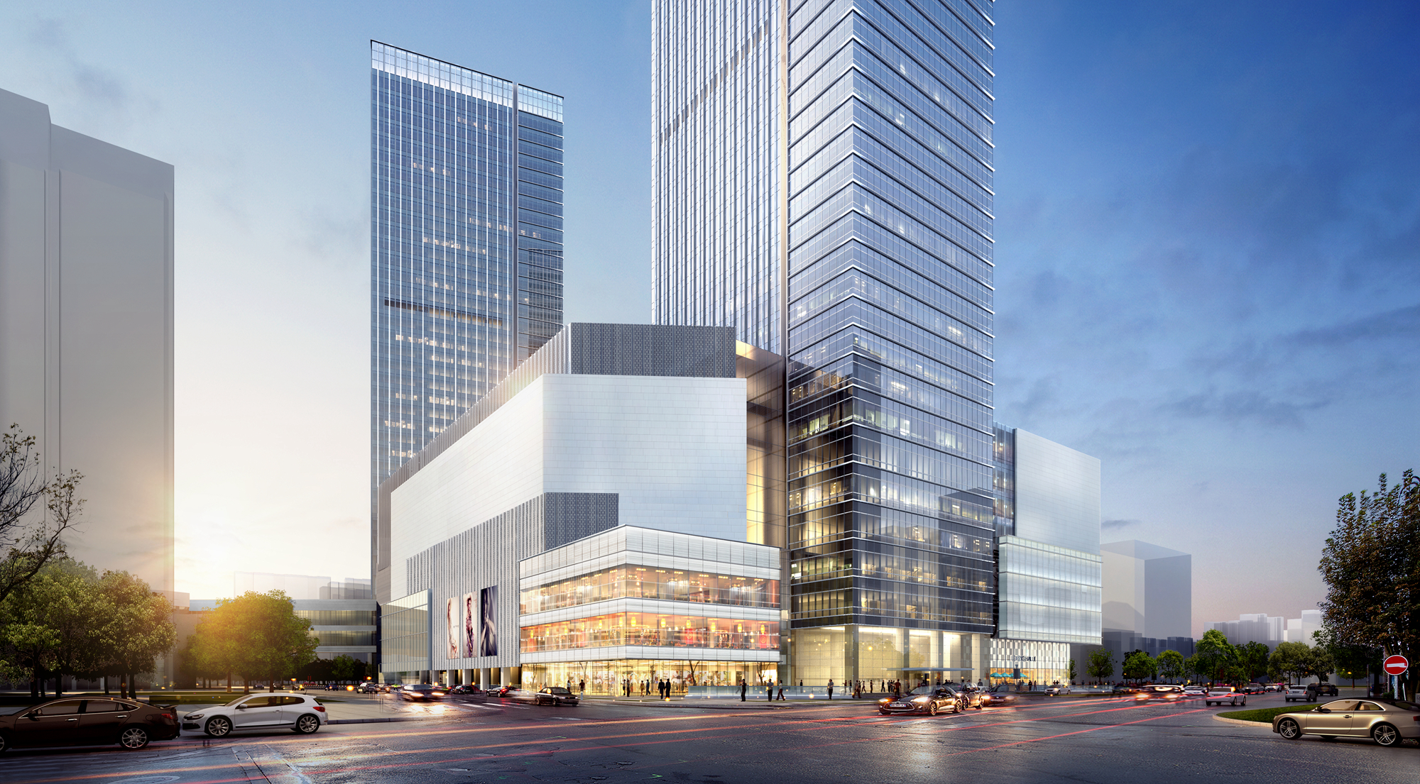 本工程總建筑面積約39萬㎡,由兩棟超高層塔樓和裙房組成。1#塔樓為5A級寫字樓,主體高度185m。2#樓為超高層公寓,高度176米。商業裙房地下3層,地上8層,結構高度46.15m。