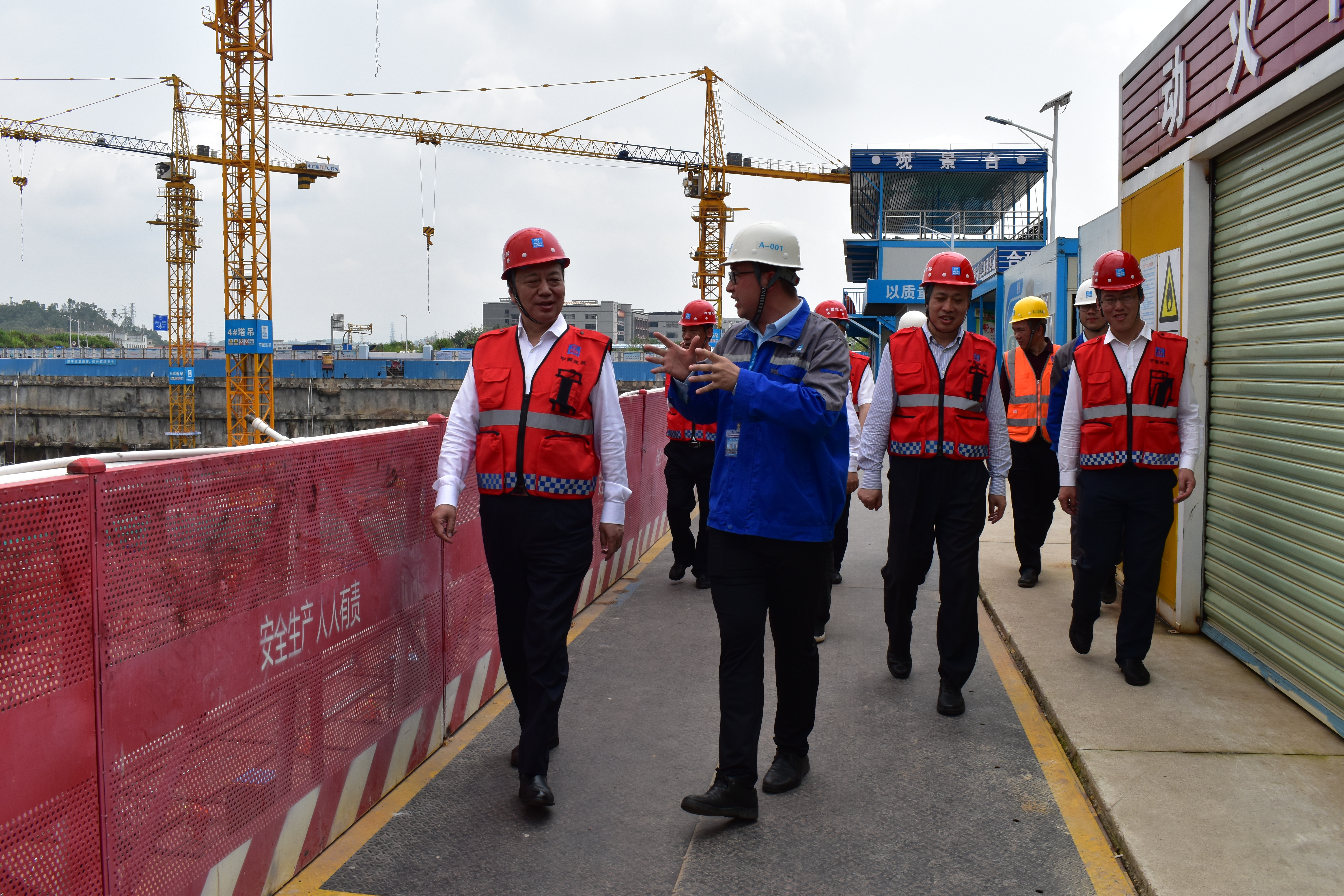 4月17日,局黨委書記、董事長校榮春、局副總經理韓興爭、華南分局黨委書記許啟新、華南分局副局長楊深奎、一公司副總經理齊朋等一行蒞臨中廣核項目對安全生產、項目履約、創(chuàng)新創(chuàng)效等工作進行全方位、多角度突擊指導,華南公司黨總支副書記谷力,項目經理宮華路、項目總工陳先磊、項目生產經理王世杰陪同。