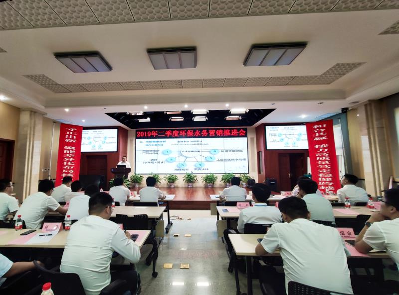 6月22日下午,公司2019年二季度環保水務營銷推進會在公司二樓培訓中心舉行,公司黨委副書記、工會主席李云、副總經理齊朋,安裝公司總經理姜修濤、黨委書記梁忠誠、各相關單位營銷人員、環保水務事業部全體人員參加了本次會議。會議由環保水務事業部助理總經理田寧主持。