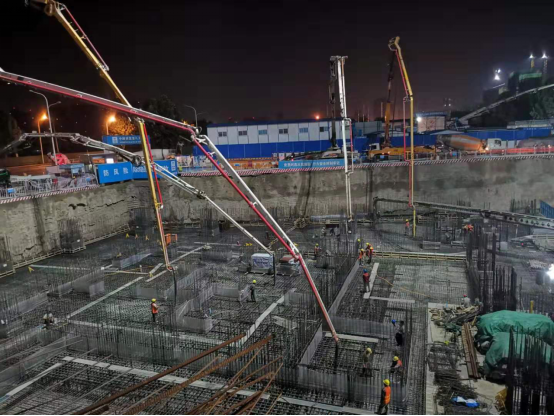 大體積筏板+C80勁性混凝土,兩座超高層同時完成節點混凝土澆筑