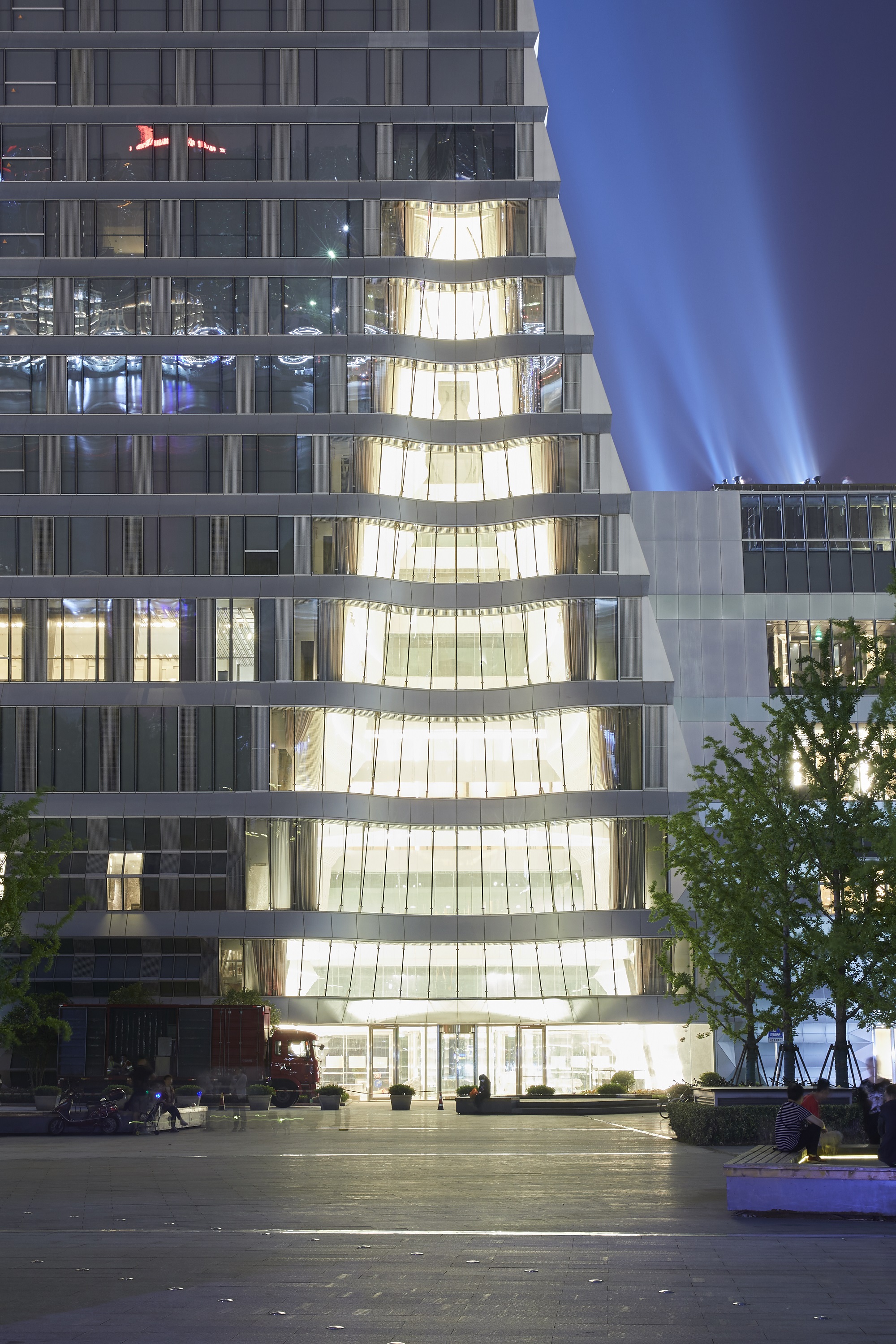 上海魯能JW萬(wàn)豪侯爵酒店是繼邁阿密、迪拜之后,全球第三間、中國(guó)第一間JW萬(wàn)豪侯爵酒店,總建筑面積約11.4萬(wàn)㎡,地上39層,地下4層,建筑高度157.5m。酒店建筑設(shè)計(jì)與迪拜塔師出同門(mén),由著名的美國(guó)SOM建筑設(shè)計(jì)事務(wù)所操刀設(shè)計(jì)。整體設(shè)計(jì)以周?chē)h(huán)境為靈感,廣泛使用水及波紋元素,在外立面將多個(gè)對(duì)稱(chēng)幾何空間打造為一體,以層疊感來(lái)詮釋簡(jiǎn)潔流暢的建筑美學(xué),呈現(xiàn)的是恰到好處的溫柔。酒店大堂采用A字型設(shè)計(jì),高60米,相當(dāng)于近20層民用建筑的高度,內(nèi)向傾斜角度達(dá)到79度,并有弧形與直線的相互變化,整體觀感氣勢(shì)恢弘。