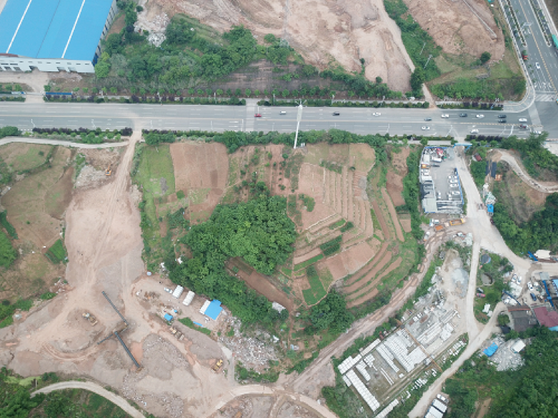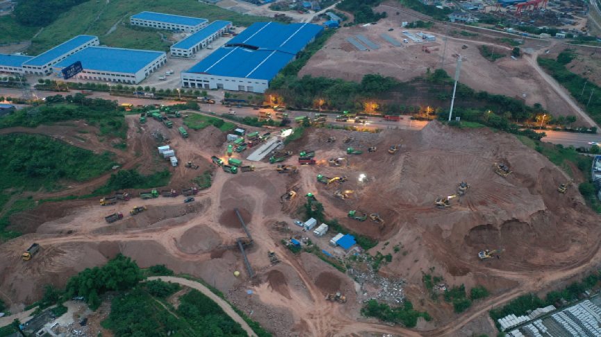 項目部自該地塊摘牌當夜即進入現場開展施工,現場清障工作情況復雜,項目通過細化分工,責任到人,工作限時等措施,項目自2019年6月25日進場僅用23天,先后清除了當地村民青苗、隧道項目部辦公區、隧道項目加工場、砂石廠、預制構件廠、10KV高壓線、31米高信號塔、民房等障礙物。同時項目部適時調整施工總體部署,根據清障進度及時插入施工,為確保預售進度節點爭取了寶貴的時間。