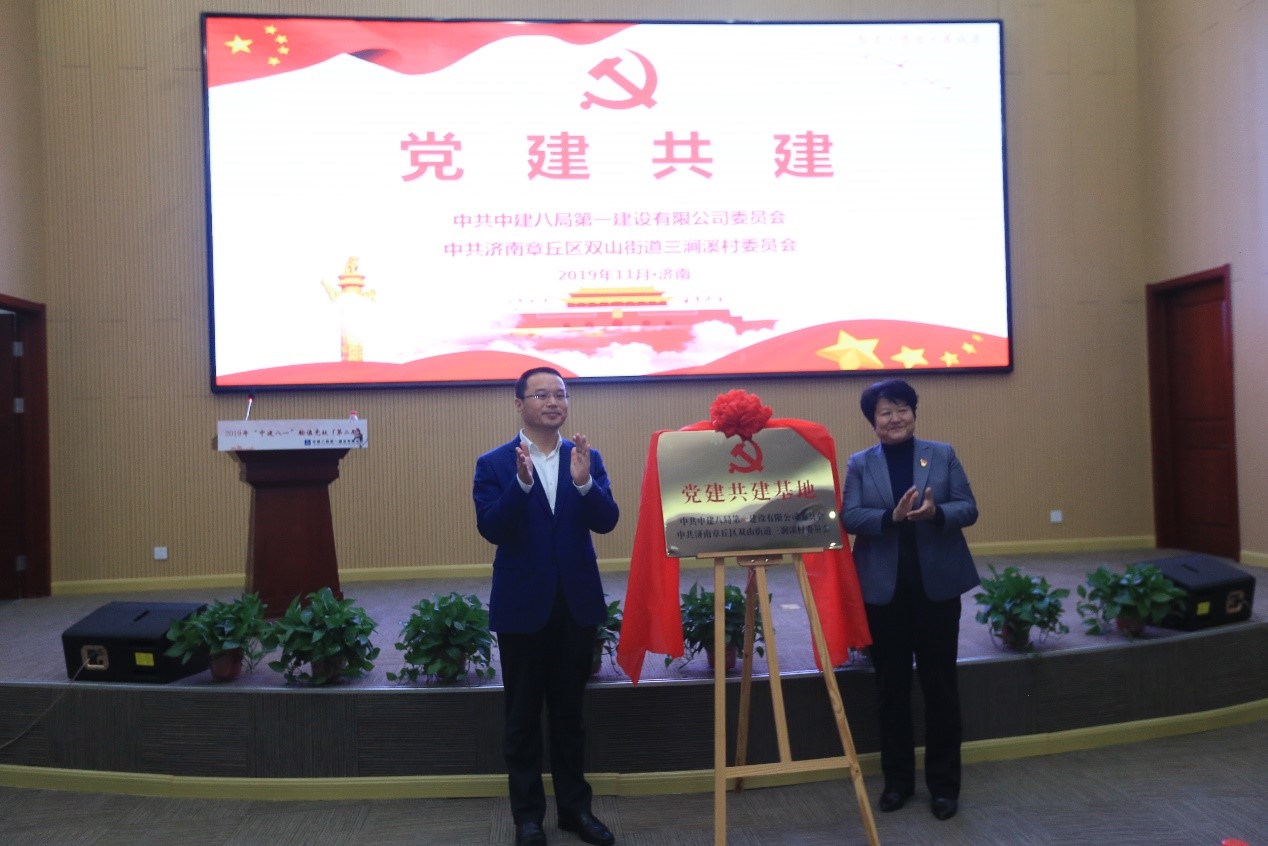 黨建凝聚合力,共建謀求發展。會上,董文祥與高淑貞共同為“中共中建八局第一建設有限公司、中共濟南章丘區雙山街道三澗溪村委員會黨建共建基地”揭牌,攜手推進基層黨建高質量發展。