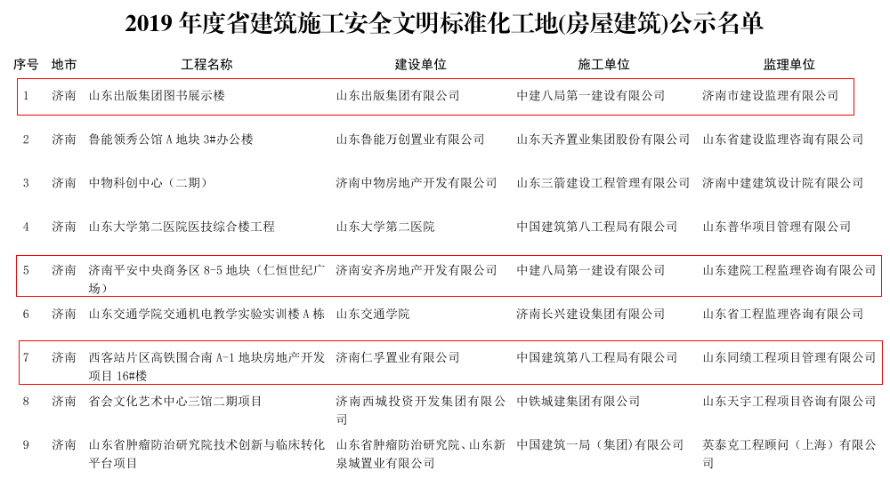 近日,濟南公司七個項目獲評2019年度“山東省建筑施工安全文明標(biāo)準(zhǔn)化工地”稱號。