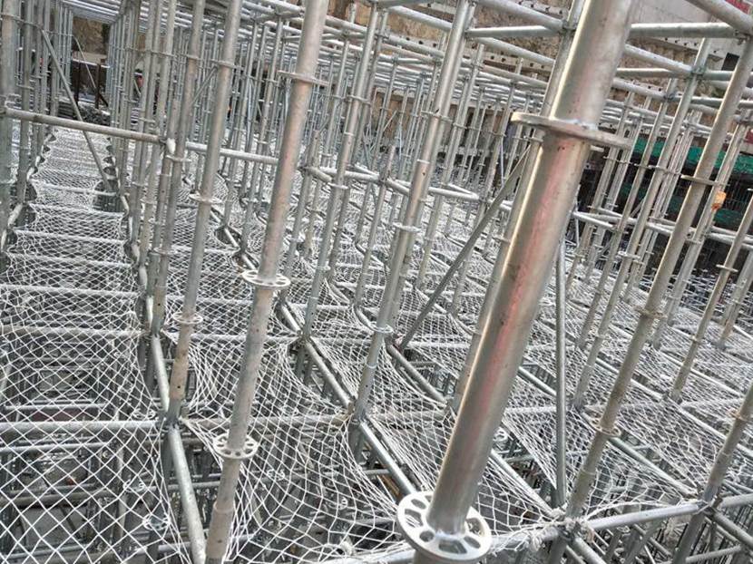模板支撐體系施工時,內腳手架搭設均滿鋪水平安全兜網進行防護