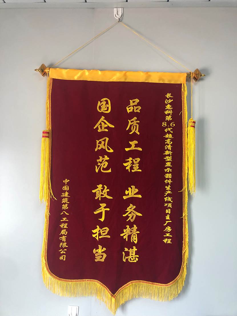 7月30日,在長沙惠科監理例會上,業主授予中建八局“品質工程 業務精湛 國企風范 敢于擔當”錦旗和獎杯。