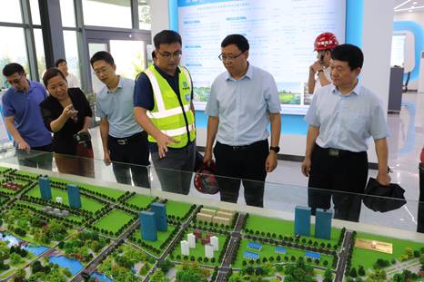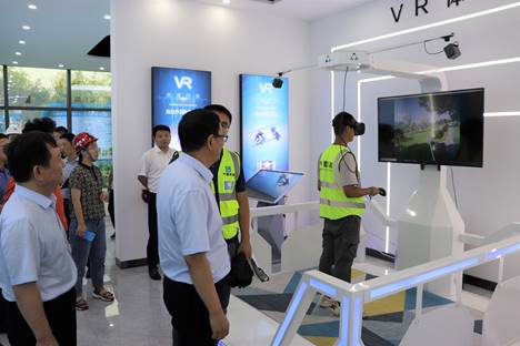 緊接著,栗建昌一行來到楊家河項目“智慧水務”中心。項目經理劉凱從沙盤布置、VR安全體驗、企業文化、智慧工地等方面詳細介紹楊家河項目獨具特色的“智慧水務”中心,現場演示了VR安全體驗設備和智慧噴淋系統。栗建昌對將來可實現智能終端遠程操控噴淋系統、遠程掌控河道情況等表示期待。