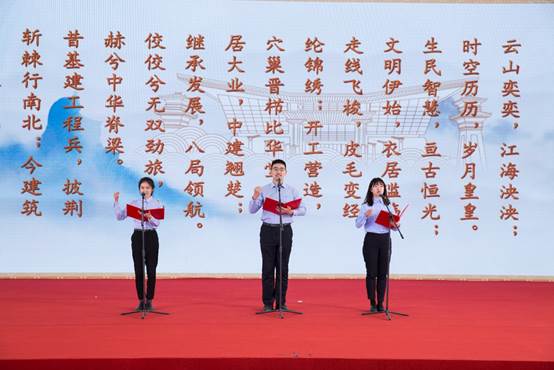 活動(dòng)在絢麗洋溢的開場(chǎng)舞《舞動(dòng)雄安》中正式開始,主題演講《急速戰(zhàn)“疫”顯擔(dān)當(dāng)》重現(xiàn)了抗疫期間,八局所屬14家單位火速集結(jié)、雷霆出擊,在14個(gè)城市,建起21個(gè)醫(yī)療援建項(xiàng)目的事跡;情景演講《精準(zhǔn)扶貧 共赴小康》深情演繹了八局定點(diǎn)幫扶的甘肅省卓尼縣成功脫貧摘帽的央企大愛;雄安管廊項(xiàng)目紀(jì)錄片、情景劇《鐵軍精神捍雄州》展現(xiàn)了八局雄安建設(shè)者面對(duì)新冠疫情臨危不懼,在臺(tái)風(fēng)面前迎難而上,為新區(qū)建設(shè)保駕護(hù)航的鐵軍作風(fēng);朗誦《發(fā)展賦》弘揚(yáng)了讓建筑鐵軍的旗幟高高飄揚(yáng)的先鋒精神、撤僑精神、援建精神;演講《彰顯鐵軍風(fēng)范,續(xù)寫海河精神》講述了在海河之畔,八局人以鐵軍風(fēng)范創(chuàng)造建筑奇跡,孕育海河精神的故事;合唱《千年雄安》歌聲昂揚(yáng)、氣勢(shì)如虹,將現(xiàn)場(chǎng)的氣氛帶入高潮,活動(dòng)在雄偉昂揚(yáng)的旋律中落下帷幕。
