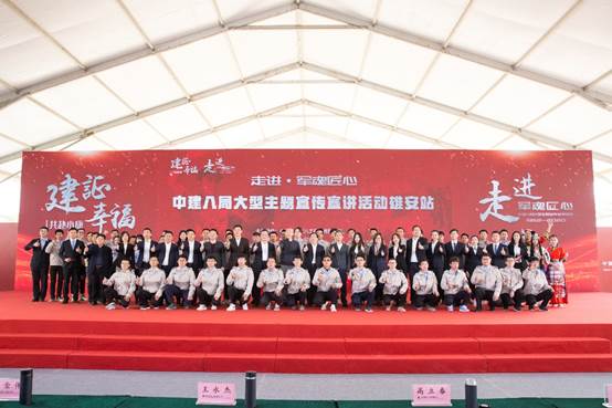 雄安新區(qū)黨工委委員、管委會(huì)副主任王永杰,雄安新區(qū)管委會(huì)公共服務(wù)局局長(zhǎng)高立春、文旅組組長(zhǎng)李丹,雄安集團(tuán)總經(jīng)理助理、戰(zhàn)略發(fā)展部部長(zhǎng)潘成龍,雄安集團(tuán)基礎(chǔ)建設(shè)公司總經(jīng)理助理李鵬飛;中建八局黨委副書記、工會(huì)主席于金偉,局黨委工作部部長(zhǎng)凌長(zhǎng)連,雄安分局副局長(zhǎng)廖鮮明,一公司總經(jīng)理、黨委副書記牛化憲,黨委副書記、工會(huì)主席劉文納,以及中建八局駐雄安區(qū)域單位領(lǐng)導(dǎo)及員工代表、各項(xiàng)目一線建設(shè)者代表共計(jì)150余人參加活動(dòng)。