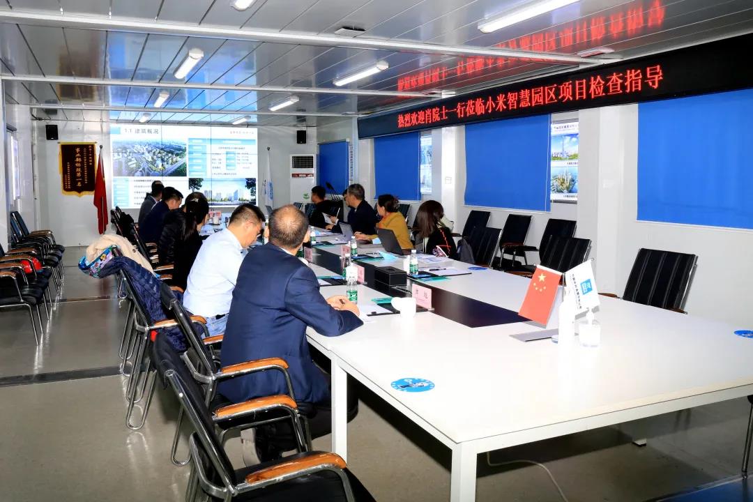 肖緒文一行首先聽取了小米智慧園區(qū)項(xiàng)目運(yùn)營情況以及5G智慧工地應(yīng)用的詳細(xì)匯報(bào),隨后到5G智慧建造展示中心參觀。