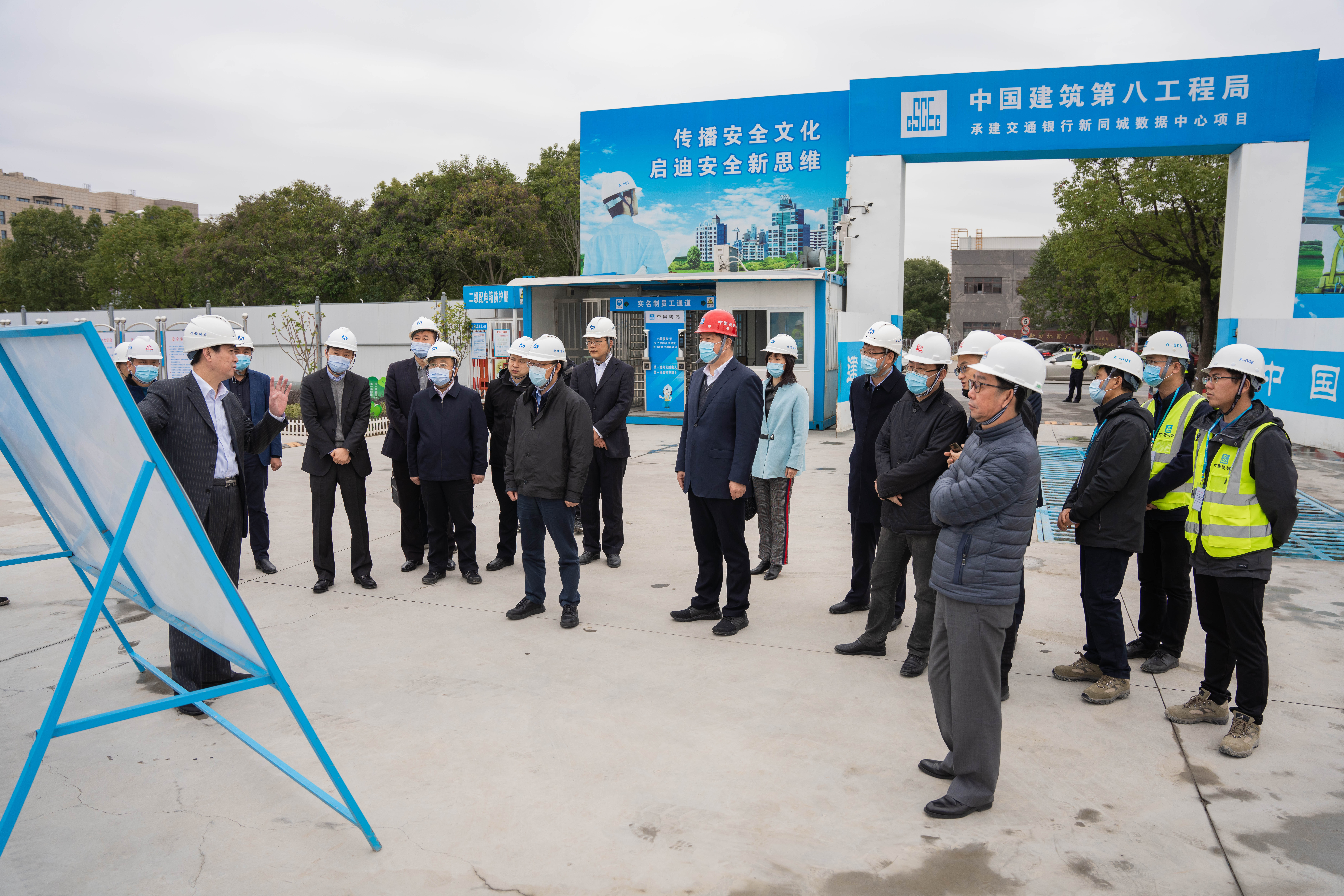 12月2日,交通銀行董事長任德奇,金融科技部總經理李肇寧,總務部總經理江濤,副總經理譚金煒,數據中心總經理周彥倜,長三角一體化管理總部副總裁高干、董怡蓓一行赴交通銀行新同城數據中心項目調研,交通銀行總行資深專家、項目工作組組長周笑雷,交通銀行項目經理、總行高級工程管理王濤,中建八局副總經理、華東分局局長孫維才參加調研。