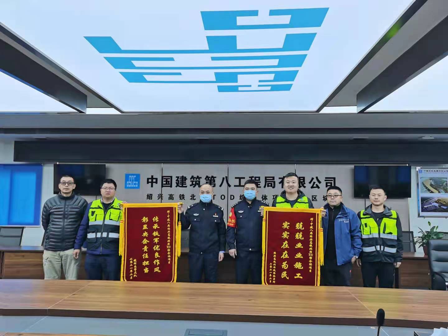 兩面錦旗充分體現了交通管理部門與鐵路派出所對紹興北站TOD綜合體項目高標準施工管理的肯定,彰顯了中建八一作為央企的責任擔當。