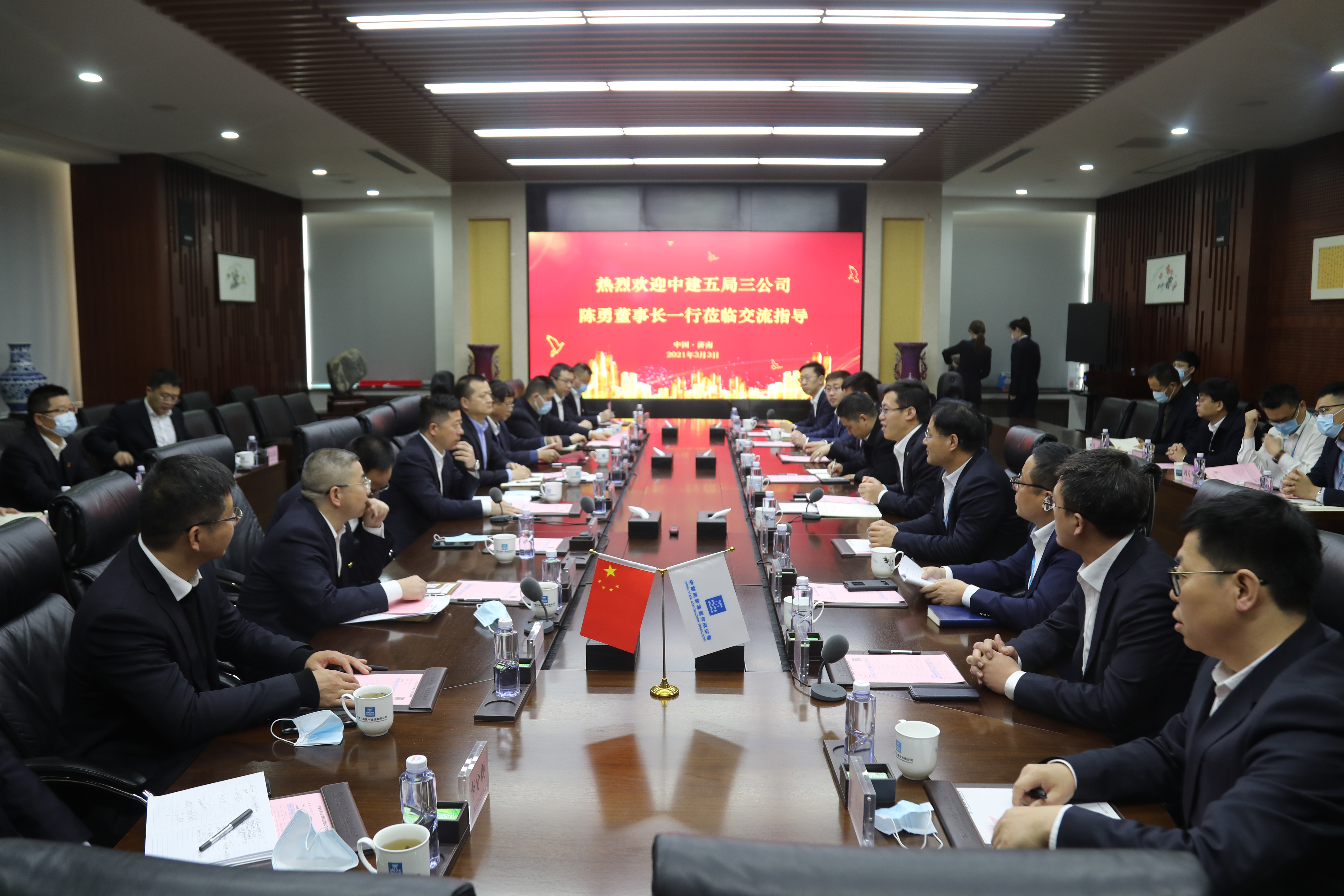 3月3日,中建五局三公司黨委書記、董事長陳勇帶隊,到訪中建八一總部開展工作交流。公司黨委書記、董事長齊朋熱情接待,雙方就進一步開展合作進行了深入交流。
