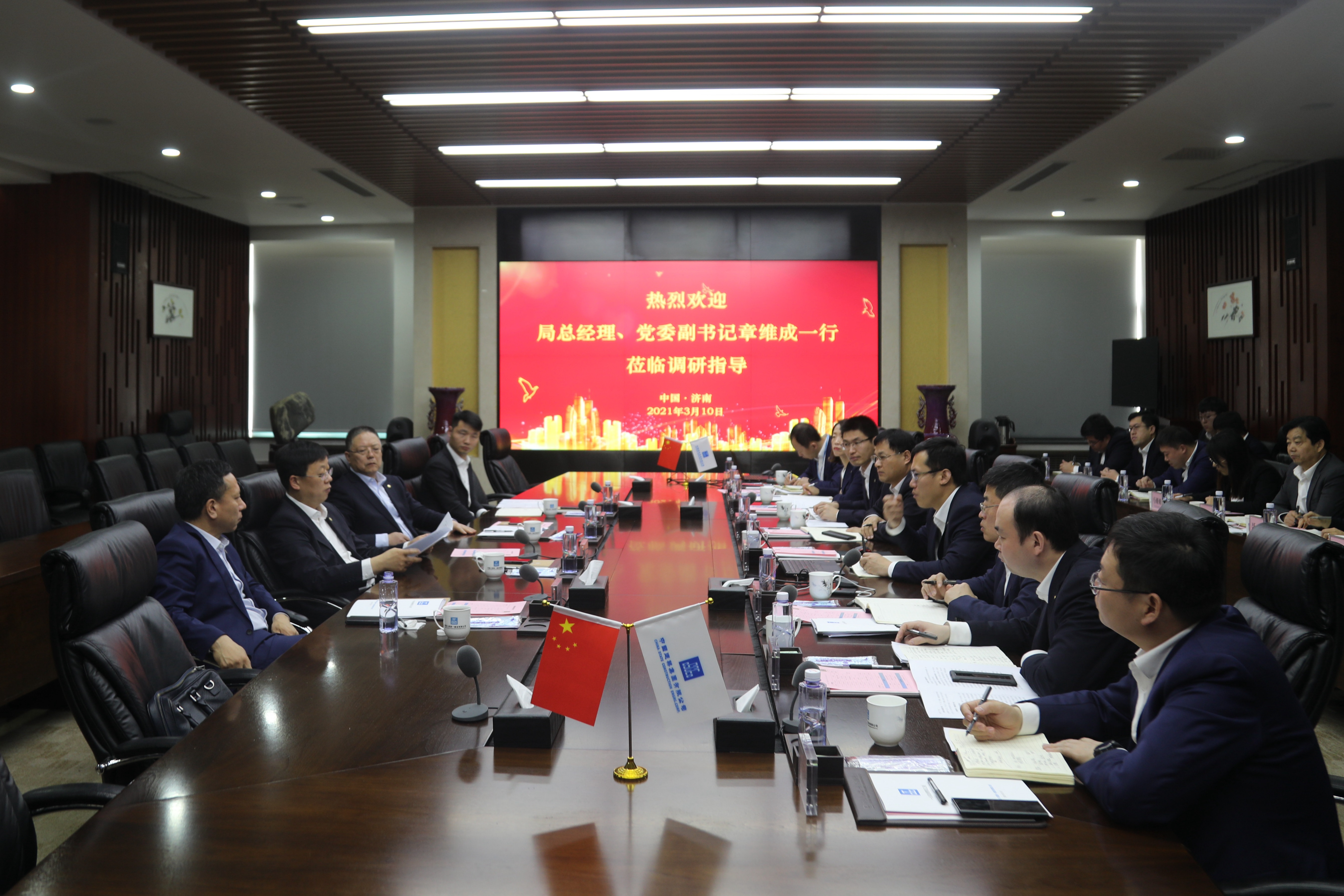 調(diào)研座談會(huì)上,章維成一行首先聽取了公司發(fā)展情況匯報(bào)。齊朋匯報(bào)了公司的發(fā)展歷程、組織架構(gòu)、榮譽(yù)資質(zhì)等基本情況,隨后回顧“十三五”發(fā)展成果,從“三引領(lǐng),兩驅(qū)動(dòng)”等方面匯報(bào)了公司各項(xiàng)改革舉措與成績(jī),剖析了當(dāng)前高質(zhì)量發(fā)展的矛盾與不足,最后從“高質(zhì)量發(fā)展、創(chuàng)新活力、價(jià)值創(chuàng)造”三個(gè)方面重點(diǎn)匯報(bào)了2021年工作思路。