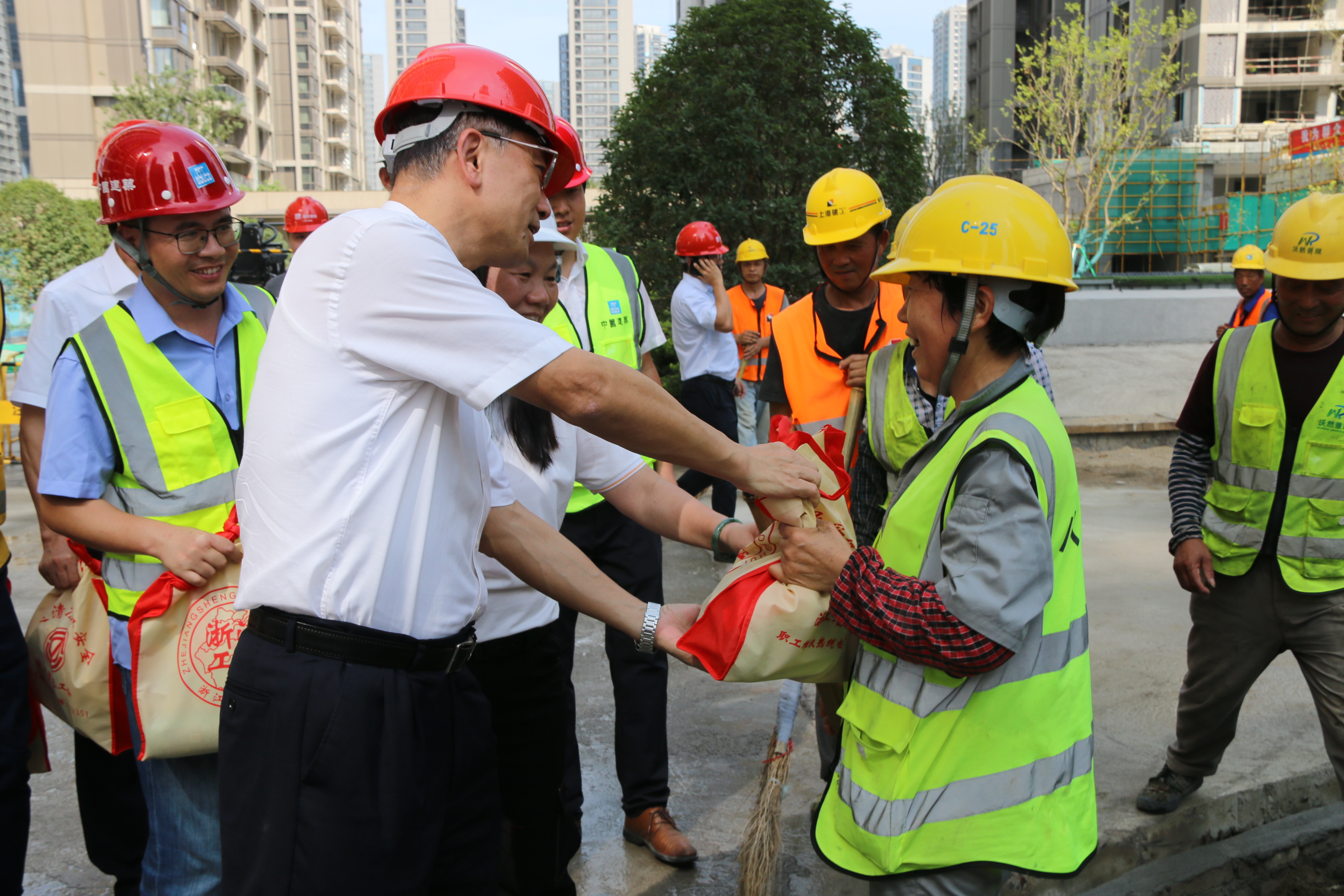 浙江省人大常委會副主任、總工會主席史濟錫到杭州亞運村項目開展高溫慰問活動