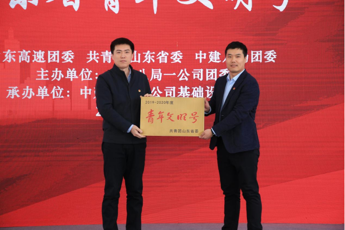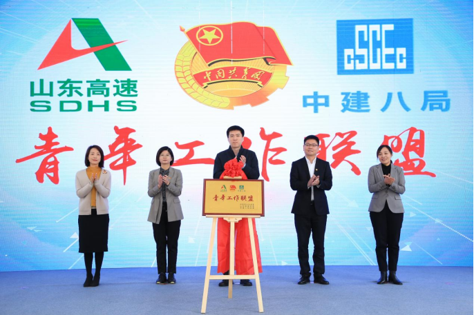 孫巍代表共青團山東省委授予中建八局一公司智慧建造設計研發法務團隊“山東省青年文明號”;授予中建八局一公司張傳奎項目團隊“全國青年文明號”。隨后,團省委、山東高速集團、中建八局共同為“青年工作聯盟”揭牌。