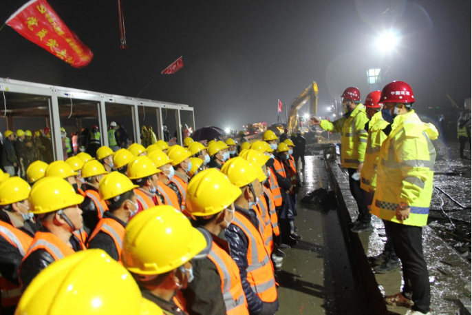分區(qū)作戰(zhàn),一名黨員就是一面旗幟!現(xiàn)場劃分為17個工區(qū),81名黨員沖鋒在前,各工區(qū)責(zé)任人由具備10年以上資深施工經(jīng)驗的項目經(jīng)理擔(dān)任,公司工程管理部采取“3時快報”+“3級管控”相結(jié)合的方式,對現(xiàn)場平面管理實行全覆蓋動態(tài)跟蹤,助推隔離點建設(shè)全速推進。