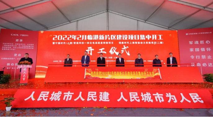 2月19日,臨港新片區在中建八一承建的寧德時代(上海)智能科技一體化電動底盤研制項目、瑞庭時代上海智能動力系統項目(二期)舉行2022年2月建設項目集中開工儀式。上海市委常委、浦東新區區委書記、臨港新片區黨工委書記、管委會主任朱芝松出席,中建八局黨委副書記、總經理章維成作為施工代表發言。