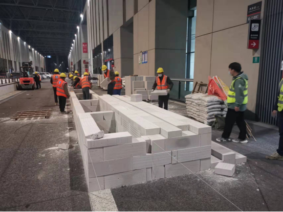 截至下午17點,現(xiàn)場累計進場的管理人員達100余人,工人達200余人。與此同時,機械設(shè)備、以及各類建設(shè)物資正陸續(xù)進場,目前已進場加氣混凝土砌塊近500m3,集裝箱樣板房140個,熱水器150臺、成品水池290個、成品蹲坑390個、淋浴房150個,石灰砂漿、粘結(jié)劑等60余噸。預(yù)計4月6日上午9點前將完成所屬區(qū)域140個集裝箱的吊裝工作,并確保在4月6日內(nèi)完成集裝箱墻板改造以及成品衛(wèi)浴的安裝,實現(xiàn)所有箱體衛(wèi)生設(shè)施就位。