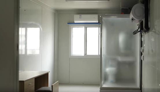 同時衛生間設有機械排風,洗澡有浴霸,房間內有掛設空調,為學生創造良好的衛生居住條件。