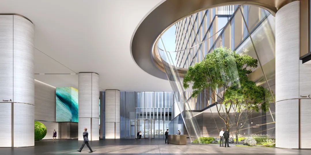 項目在設計過程中提取點、線、面元素并重新排列組合,融合獨具特色的嶺南建筑語言,整體室內設計倡導卓越生態理念,營造現代簡約的都市商業綜合體品質,創造符合建筑氣質和功能特點的人性化公共空間。