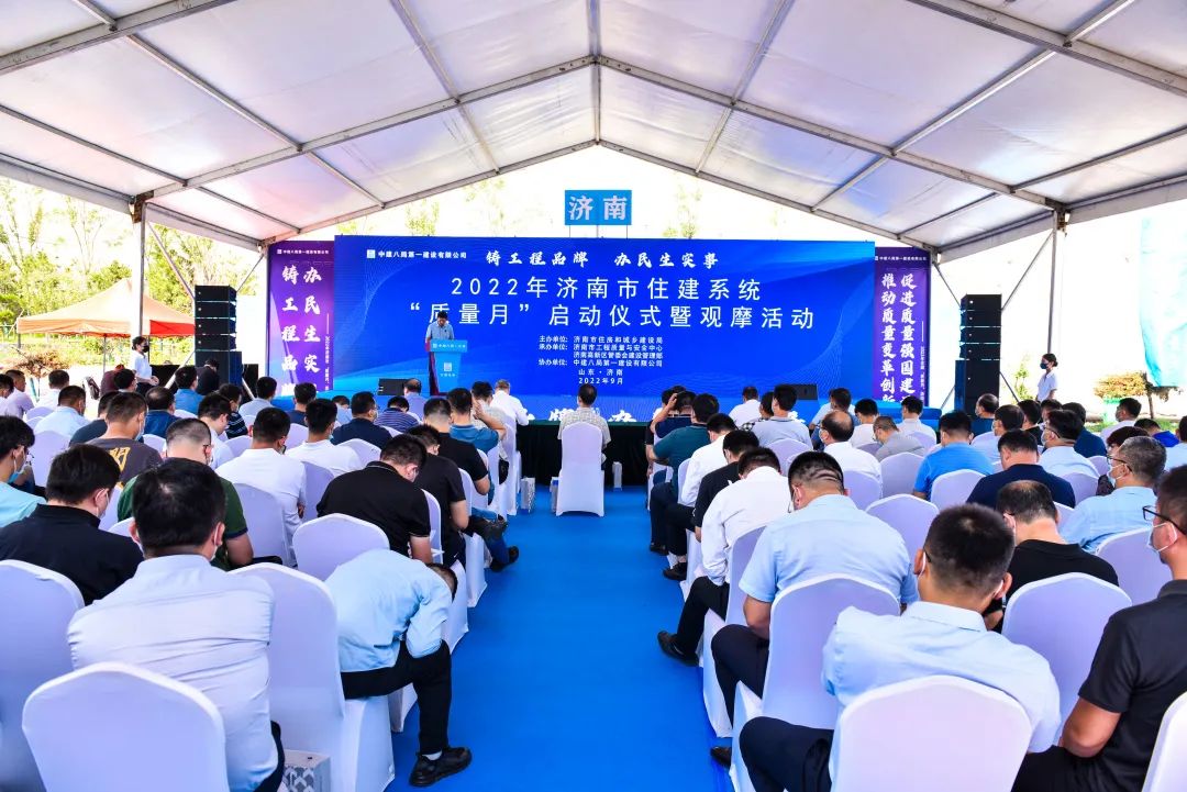 91日,濟南市住建系統質量月活動啟動儀式在中建八局一公司承建的山東省公共衛生臨床中心項目舉行。濟南市住房和城鄉建設局一級調研員王冠一,高新區管委會主任助理劉寵寶,山東省公共衛生臨床中心黨委副書記、主任張忠法,市住建局工程質量安全監管處處長趙繼光,市工程質量與安全中心主任劉其賢,中建八局一公司總工程師于科,各區縣住建部門、監督機構、監理單位等150余人參加活動。