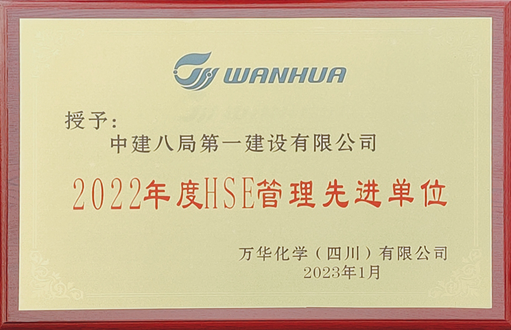 1月28日,眉山市年產5萬噸鎳鈷錳酸鋰正極材料項目部在建設單位萬華化學(四川)有限公司召開的“2022年度承包商表彰暨2023年工程建設動員大會”上榮獲“2022年度HSE管理先進單位”稱號。項目部專業工程師程俊獲“工程建設先進個人”榮譽稱號。