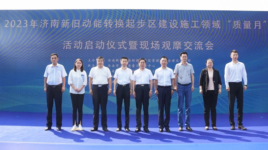 9月8日,2023年濟南新舊動能轉換起步區建設施工領域“質量月”活動啟動儀式暨現場觀摩交流會在中建八局一公司承建的黃河體育中心專業足球場項目舉行。濟南市住房和城鄉建設局、起步區管委會、濟南城建集團、中建八局一公司及各街道辦事處、建設、施工、監理(全詢)單位共200余人參與。