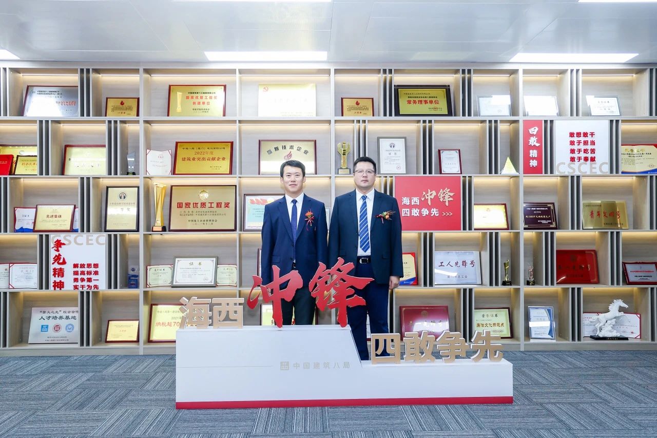儀式上,齊朋、欒金鋒共同為中建八局東南建設有限公司、“海西沖鋒 四敢爭先”黨建品牌揭牌。