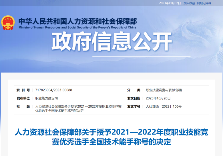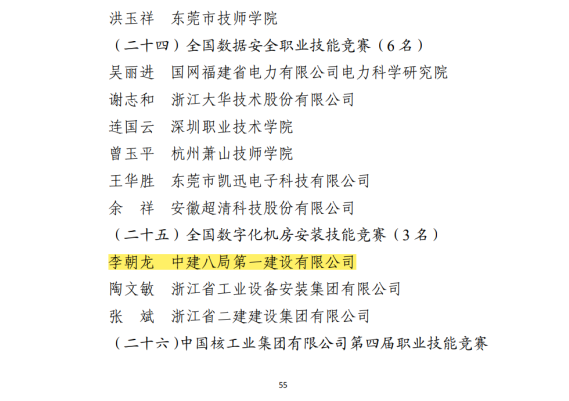 近日,國家人力資源和社會保障部公布了《關于授予2021—2022年度職業技能競賽優秀選手全國技術能手稱號的決定》,中建八局一公司員工李朝龍榮獲“全國技術能手”。“全國技術能手”是我國設立的優秀技術工人榮譽稱號,是國家技術人才評選表彰制度的重要組成部分。