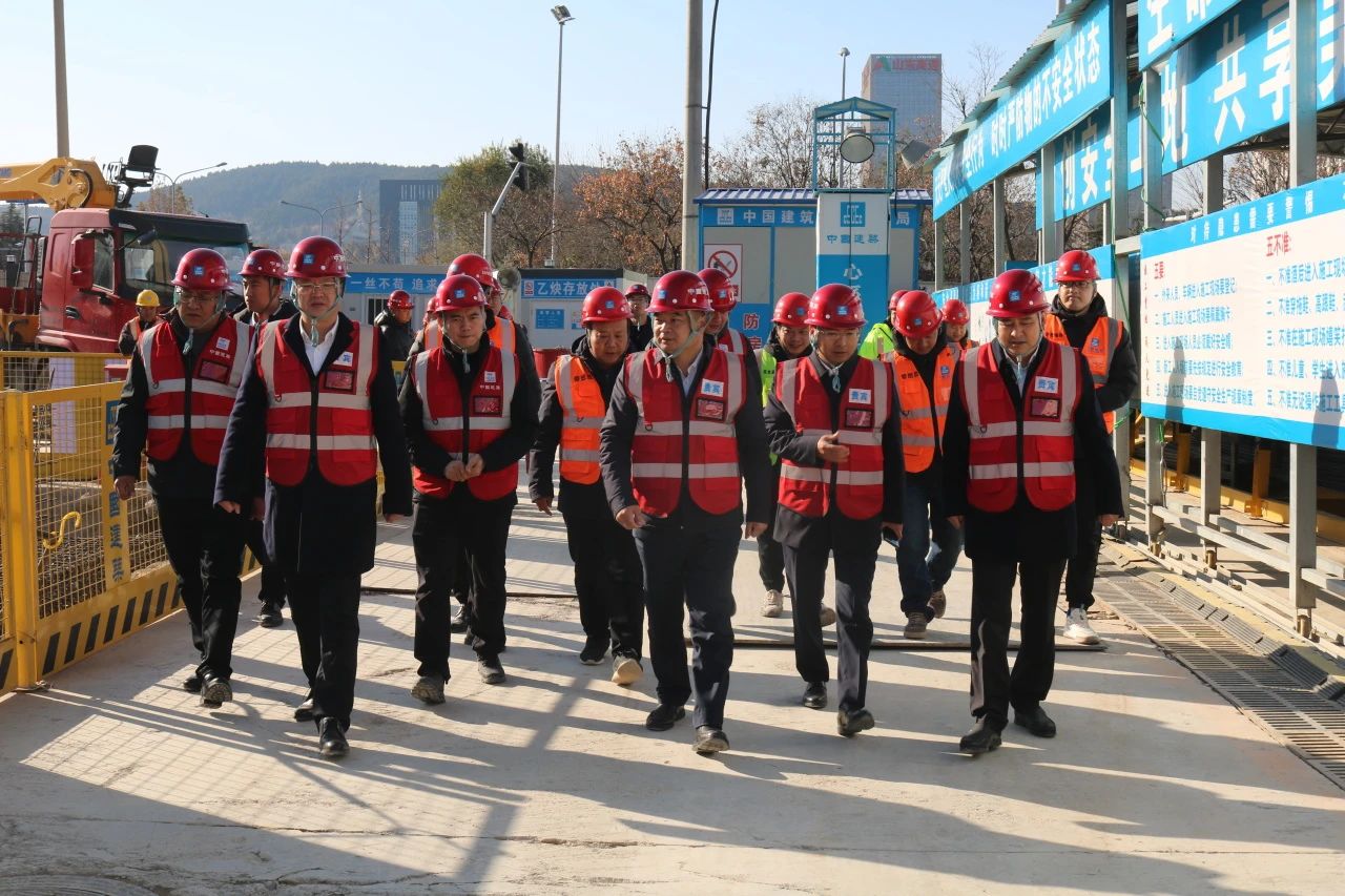 劉書冬深入施工現場,全面了解項目生產履約、文明施工和安全生產責任制落實情況,重點關注項目超硬巖層樁基施工技術運用成效。在肯定項目建設情況的同時,他強調,要進一步強化工期管控,加大施工方案策劃、實施力度,不斷提升施工管理水平;要嚴格落實現場安全文明標準化施工,切實做到“綠色環保無污染、低音降噪不擾民”,并勉勵大家繼續弘揚“軍魂匠心、家國情懷、令行禁止、使命必達”的鐵軍文化,優質高效完成各項節點,為濟南人民打造精品工程。