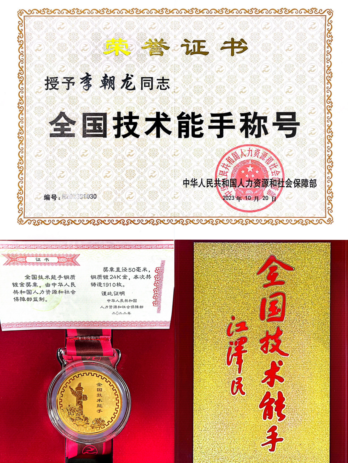 中建八一智造研發中心研發工程師李朝龍獲評人力資源和社會保障部頒發的2021-2022年度職業技能競賽優秀選手全國技術能手稱號,1月22日,李朝龍領取了“全國技術能手”獎牌獎章,該獎項是我國技能人才領域的最高政府獎項,是給予高技能人才的頂尖榮譽。