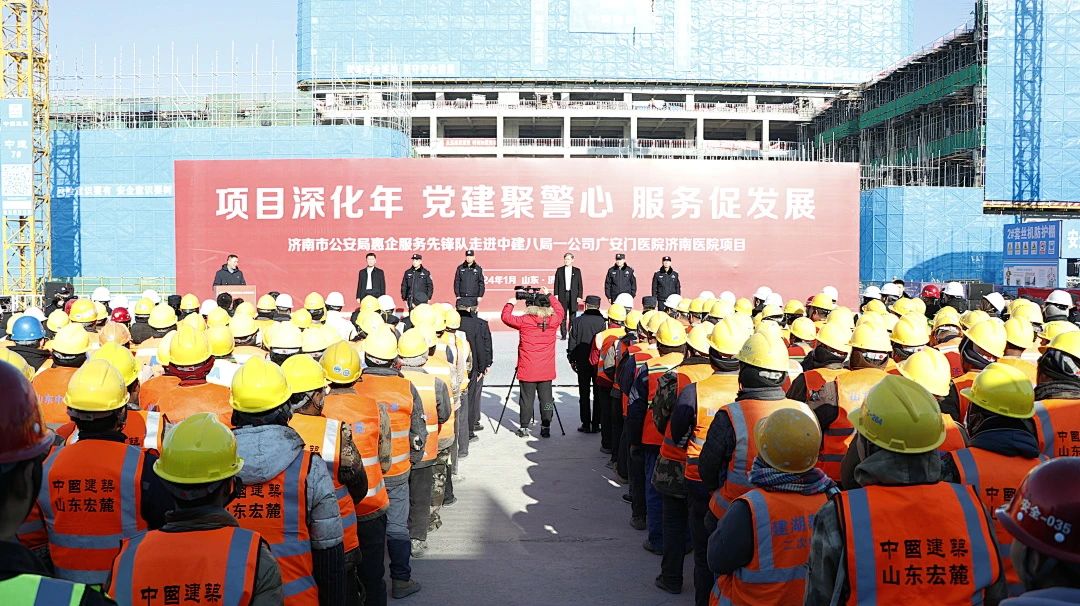 1月24日,濟南市公安局惠企服務先鋒隊到公司承建的中國中醫科學院廣安門醫院濟南醫院項目,開展“項目深化年 黨建聚警心 服務促發展”主題活動,為項目普及法律與急救知識并開展愛心義診。