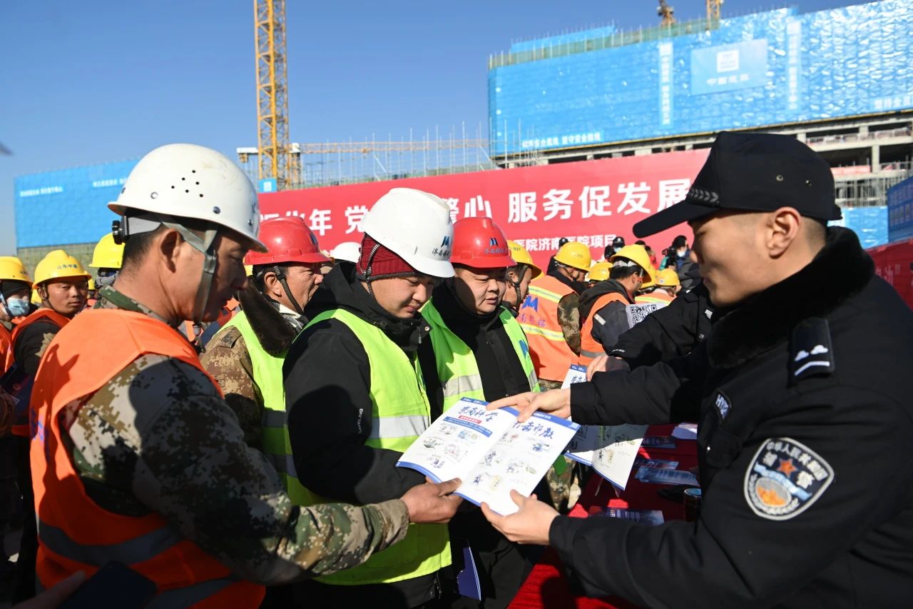 濟南市公安局重點工程保衛支隊支隊長趙鋒,槐蔭分局政委鄭繼明,副局長陳永杰,市公安局重保支隊副支隊長范躍軍,山東省立三院事業發展部主任張璞,山東省大眾健康管理中心主任李令國,中建八局一公司紀委書記徐紅志,各單位相關負責人及現場工友共計300余人參加活動。