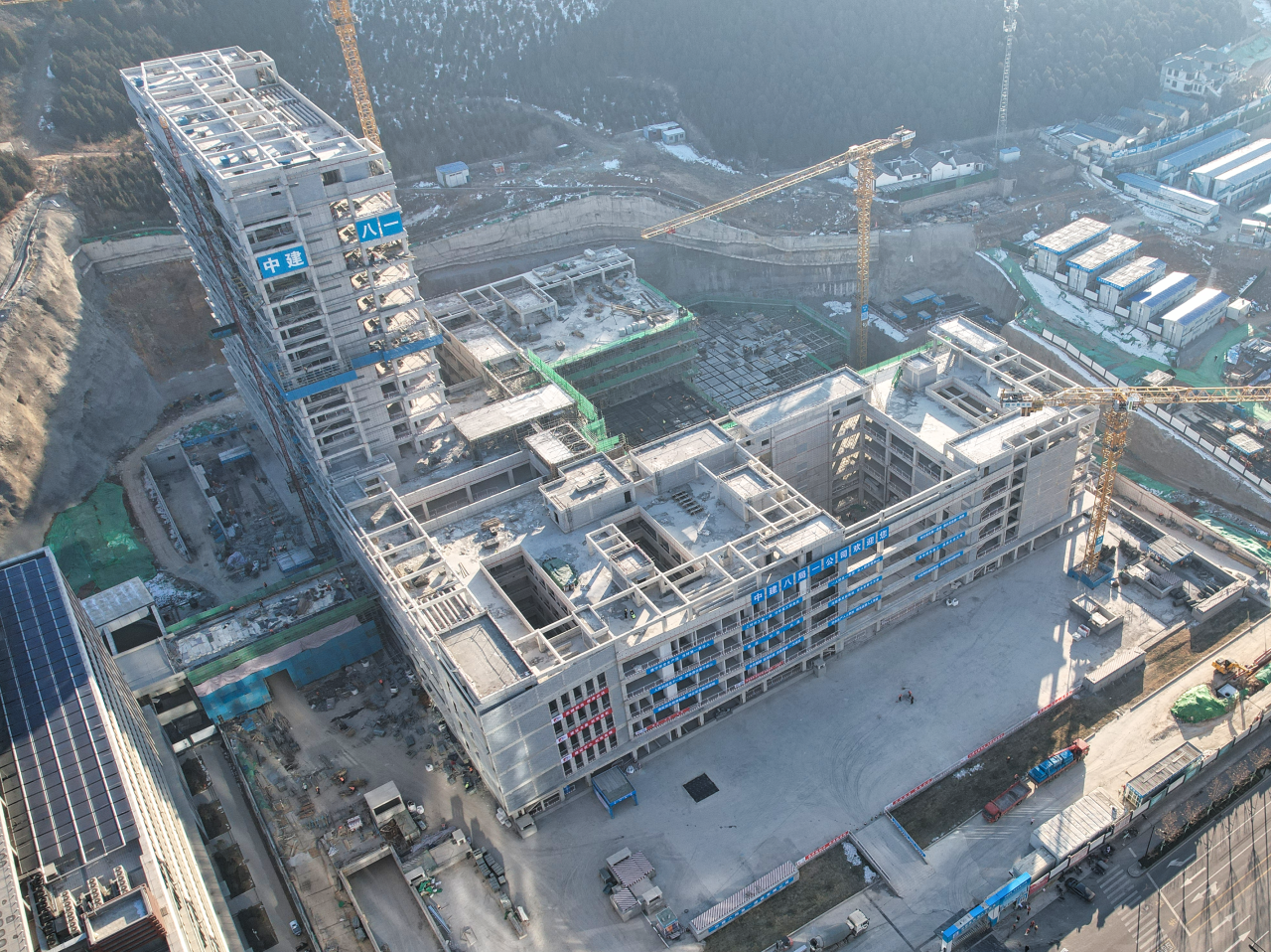 濟南市中心醫院(東院區)二期項目位于濟南高新區,總建筑面積20.58萬平方米,建設內容包括辦公綜合樓、門診醫技綜合樓及2號病房樓,規劃床位數1065張,設有普通手術室28間、機器人手術室2間,設計停車位1660個。目前,項目處于裝飾裝修階段,預計2025年竣工。