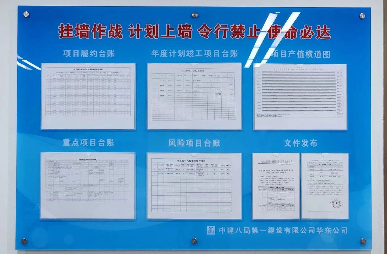 掛圖作戰(zhàn),計(jì)劃上墻。中建八一積極響應(yīng)局建立“掛圖作戰(zhàn)”工作機(jī)制的要求,落實(shí)分局“履約管理 掛圖作戰(zhàn)”實(shí)施指南,在公司總部、二級(jí)單位、項(xiàng)目3個(gè)層面全覆蓋開(kāi)展“掛圖作戰(zhàn)”,計(jì)劃、目標(biāo)一目了然,多措并舉助推項(xiàng)目高效建造、價(jià)值創(chuàng)造。